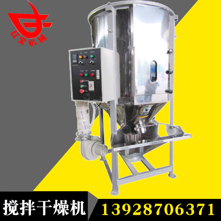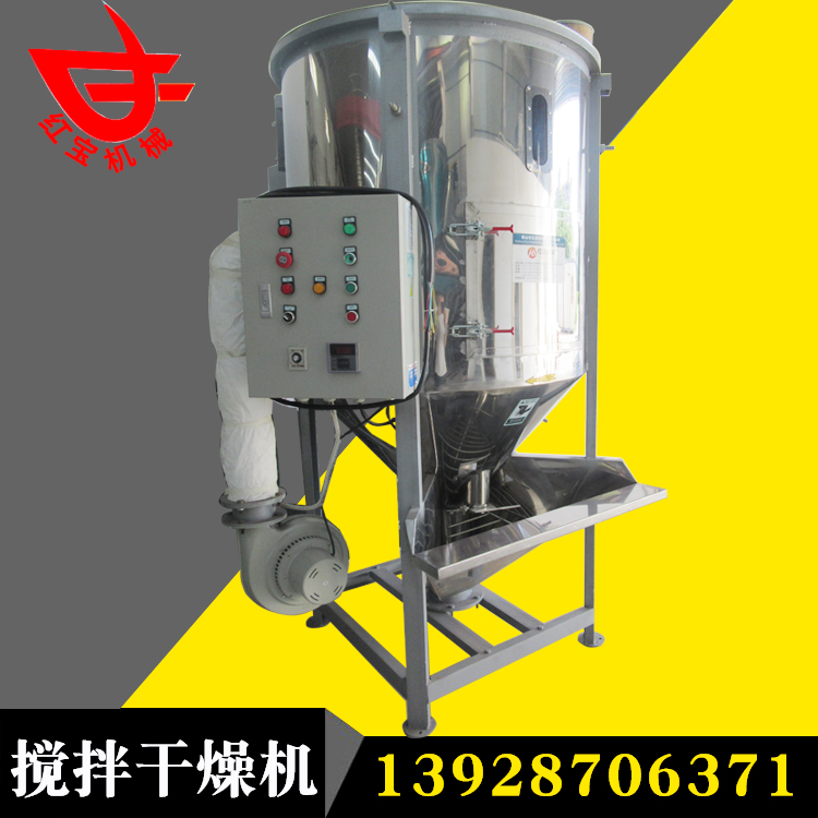聚丙稀塑料顆粒大型熱風(fēng)干燥機(jī)主要用于多種顏色塑料顆粒的混合、干燥。是注塑機(jī).造粒機(jī)的必備配套設(shè)備之一,塑料粒子從進(jìn)料 斗進(jìn)入,在螺旋葉片推進(jìn)力的作用下,沿著葉片表面向上滑動(dòng)前進(jìn),在上部的離心力作用下,向桶體四周拋開(kāi),散開(kāi)的物料不斷向下移動(dòng),由循環(huán)出料口和桶內(nèi)循環(huán)料口不斷被螺旋葉片帶動(dòng)提升,這樣反復(fù)循環(huán),達(dá)到混合的目的。與此同時(shí)空氣經(jīng)鼓風(fēng)機(jī)送至電加熱箱中,加熱后成為熱風(fēng)再經(jīng)溫控表自動(dòng)控制,以均勻合適的熱風(fēng)從樹(shù)脂顆粒間一路穿透,穿過(guò)物料層,沿途進(jìn)行熱交換,不斷帶走濕氣,樹(shù)脂粒子由上而下徐徐下降過(guò)程中連續(xù)不斷得到吹掃干燥,完成高效率干燥和混合工藝。